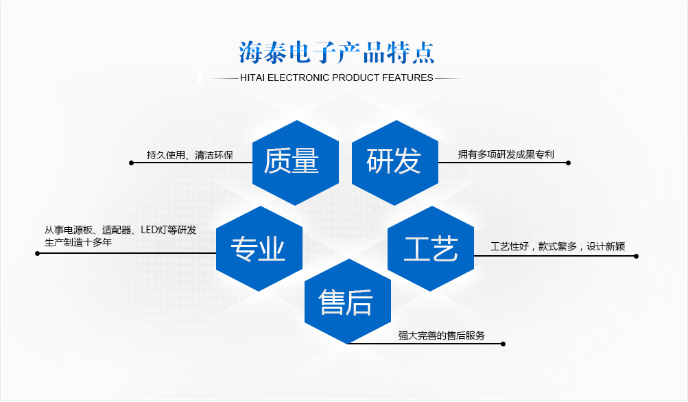 威海海泰電子有限公司成立于2003年(原威海雙豐通訊設(shè)備有限公司),是一家致力于開關(guān)電源、LED電源、電源適配器、手機充電器、醫(yī)療電源等自主研發(fā)、生產(chǎn)和銷售為一體的高新技術(shù)企業(yè)。公司秉承 “以顧客為中心”的宗旨,堅持“以人為本、質(zhì)量至上 、節(jié)能降耗、清潔環(huán)保、持續(xù)改進 ”的質(zhì)量和環(huán)境方針,科學(xué)高效的組織生產(chǎn),不斷的提高產(chǎn)品質(zhì)量。先后通過了ISO9001質(zhì)量管理體系認(rèn)證、GJB9001C質(zhì)量管理體系和GJB3001C質(zhì)量管理體系和ISO14001環(huán)境管理體系認(rèn)證。